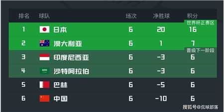 前6场,国足2胜4负积6分,暂居小组垫底,只是因净胜球落后太多排名小组最后面,距离第四的沙特只差7个净胜球,以及距离第二的澳大利亚只差1分,无论争二,还是争四,都是握有很大的希望。