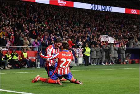 朱利亚诺-西蒙尼在上半场比赛仅仅进行到第17分钟的时候就上演梅开二度,而他的第二个进球则来自于 德保罗 的助攻。