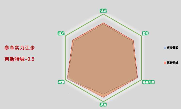 本场比赛从六芒星图可以看出,莱斯特城实力明显占优,状态出色的狐狸本场相信会反客为主占据场上主动权。