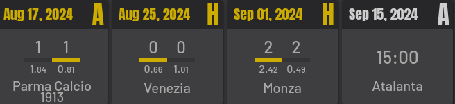 Fiorentina, led by Raffaele Palladino, has opened its league season with three draws. First, a point came off as a guest of Parma at Stadio Ennio Tardini with a score of 1-1. In the second round, Palladino's proteges were staring at a goalless draw with another league riser, Venezia, in their home cave at Stadio Artemio Franchi. In their third game, Fiorentina already had to bow to Monza at home, but eventually managed to rise from two goals behind to level 2-2. Fiorentina won the shot count by 22-4 in this game!