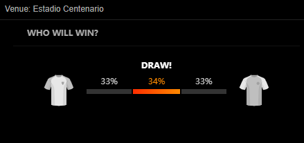 这场比赛相当关键,据当地天气预报,周四晚上蒙得维的亚地区甚至发出了飓风警告,比赛可能会在狂风暴雨中进行。如果天气破坏了比赛的精彩程度,那将令人遗憾。