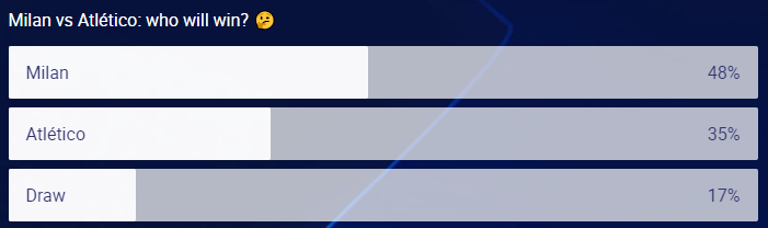 马竞主帅迭戈·西蒙尼表示:“在冠军联赛中对阵像AC米兰这样的球队真是太棒了!他们是一支近年来成长起来的顶级球队。我们知道将面对一支由优秀的、充满活力的球员组成的强大球队。我们将尝试在可以伤害他们的地方攻击他们。”
