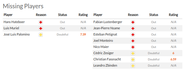 First things first, the visiting Young Boys team squad is very limited today as almost 10 players can not be used.
