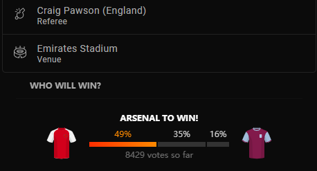 阿森纳上一次主场0比3负于维拉,这是他们近10次联赛主场第4次输给维拉(好在没有过主场连败)、第2次出现主场指数2连黑给维拉。