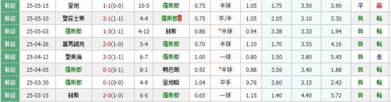 今天同樣罗斯郡強開-0.5