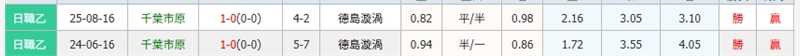 以往的賽季都是千叶市原主場-0.75跟-0.5