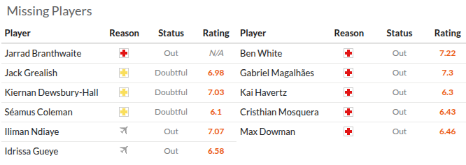 由于埃弗顿的阵容问题,阿森纳的质量优势变得更加明显。如果杜斯伯里-霍尔和格利利什缺阵,主队制造进攻威胁的能力将大大削弱。我估计阿森纳的客场胜利至少十有六会成为现实。两支球队在进球输出方面都低于平均水平,这使得总预期进球保持在2.30左右的中等水平。