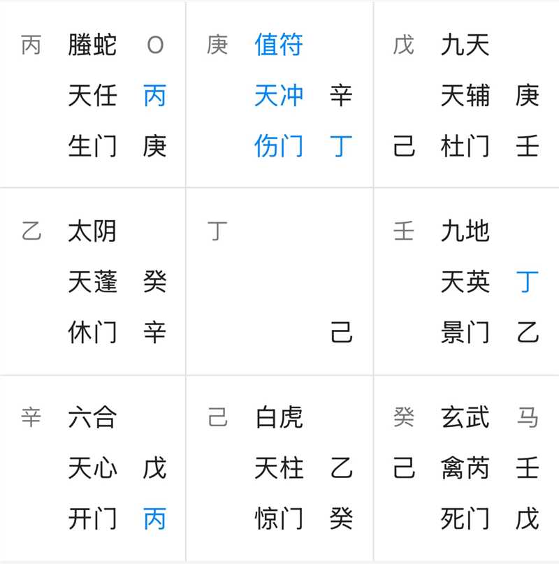 本场所问“乌迪内斯获胜”,以日干丁火为用神代表客胜目标。丁火落惊门,同宫见白虎,与值使伤门形成相互牵制。惊门主波动突发,白虎主强硬消耗。客胜目标落此结构,显示乌迪内斯在比赛中容易被迫进入高强度对抗,却难以稳定控制局面,推进过程中多受外力干扰,胜势难以形成。