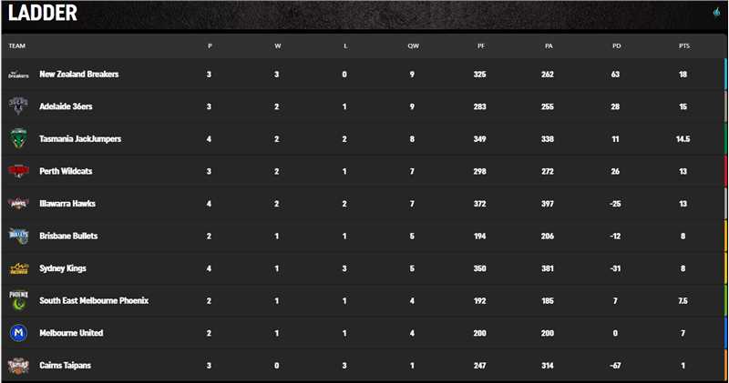 今天是星期三,大家应该都清楚了吧,又到了点燃杯的赛程里,从目前的战绩看(下图),大班毒蛇早已被淘汰,墨尔本联还存在理论上的,因为他们现在还剩2场比赛,如果这场打大班毒蛇全取7个积分,最后一场打子弹再全取7分,他们就可以排到前两名晋级决赛,当然这得看前面球队的“脸色”,现在前两名第一的破坏者(18分)和第二的36人(15分)都还剩1场比赛没打,这俩队如果能全取7分,就将锁定决赛名额,我的算法都是每节都赢的结果,也就是最理想化,但是这种难度也是最大的。